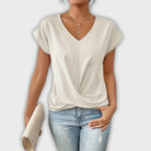 עם מחשוף V רך והקשר העדין מתחת לחזה, הטופ Eloise מציג בצורה מושלמת את הסילואט הנשית שלך. עשוי מחומר רך ואוורירי, הוא מחבק את גופך בנעימות ומספק תחושת לבישה נוחה. בין אם בפיקניק, טיול בעיר או סבב קפה נינוח עם חברים – טופ זה הוא הבחירה האידיאלית לכל הזדמנות, מבלי לדרוש הרבה מאמץ.