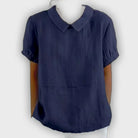 צורת הצווארון המעוגלת בעדינות והשרוולים המגולגלים נותנים לך מראה נשי וקלאסי של jamais vu.