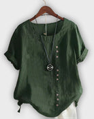 עם החזית עם הכפתורים והצווארון העגול הקלאסי, חולצה זו משדרת אלגנטיות נצחית. היא מתאימה לאירועים שונים ותמיד תגרום לך להיראות טוב.