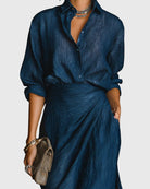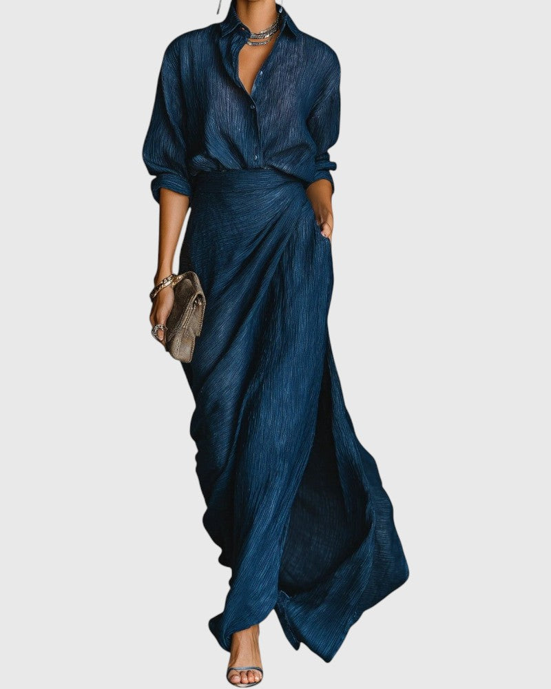 שמלת נועה משדרת אלגנטיות טבעית וקלילות בכל צעד. הגזרה העוטפת מדגישה את הקווים הנשיים ומעניקה תחושת רוך ונוחות לאורך כל היום.