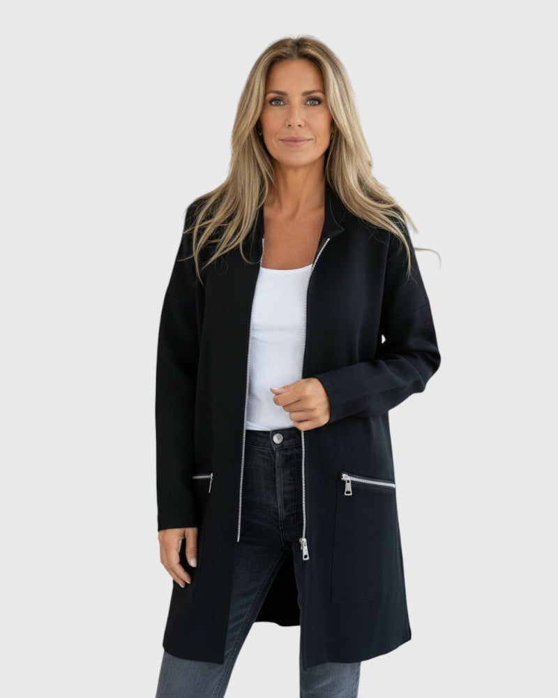 ז׳קט תמר משלב עיצוב קלאסי עם מגע מודרני ונוח. הקווים הנקיים והרוכסנים המעודנים יוצרים מראה אלגנטי ובטוח בעצמו שמתאים לכל הופעה – יומיומית או מחויטת.