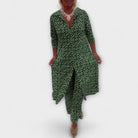 הגביהו את הסגנון שלכם עם הסט אלגנטי גיאומטרי קמילה, אנסמבל מרהיב שמחבר דפוסים נועזים עם אלגנטיות חסרת מאמץ. מושלם הן לטיולים יומיומיים והן לאירועים אלגנטיים, הסט הזה מבטיח שתבלטו בחן.