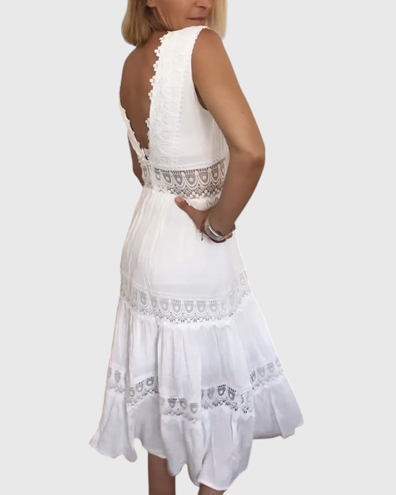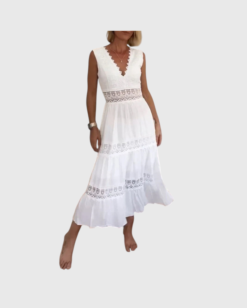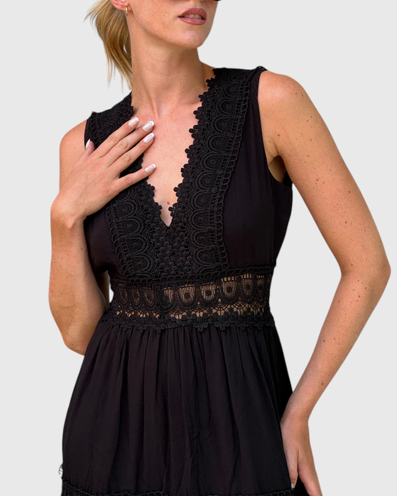 שמלה רומנטית ונשית עם עיטורי תחרה עדינים ואורך מידי מחמיא. הזרימה הרכה והפרטים האלגנטיים הופכים אותה למתאימה לימים קיציים, חופשות או מפגשים מיוחדים.