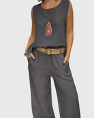אוברול רחב רגליים שמשלב בין נוחות ואלגנטיות טבעית. מושלם ליום קליל, לארוחת בראנץ’ או לערב שבו הפשטות עושה את כל הסטייל.