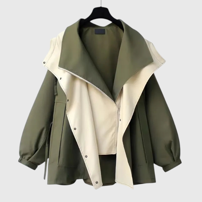 ג’קט אוברסייז עם עיצוב דו-גווני מיוחד שמעניק מראה מלא נוכחות. אידיאלי לשכבות בימים קרירים ולכל מי שאוהבת לשלב נוחות עם שיק מודרני.