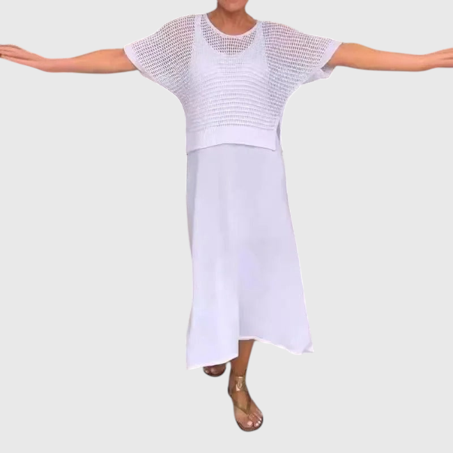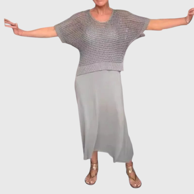 סט שמלה נינוח שמשלב אלגנטיות יומיומית עם נוחות מושלמת. בגזרה זורמת ושכבות קלילות, הוא הבחירה האידיאלית ליציאות יומיומיות או לערבים רגועים.
