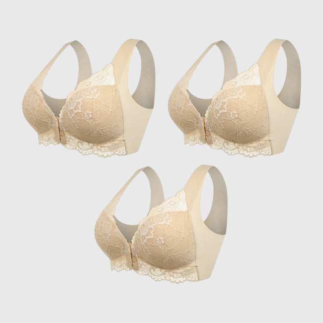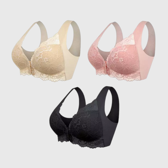 שלבי בין אלגנטיות לנוחות עם חזייה מעוצבת בתחרה יפיפייה. הסגירה הקדמית הפשוטה והגזרה המחמיאה מעניקות שילוב מושלם של תמיכה ורוך.