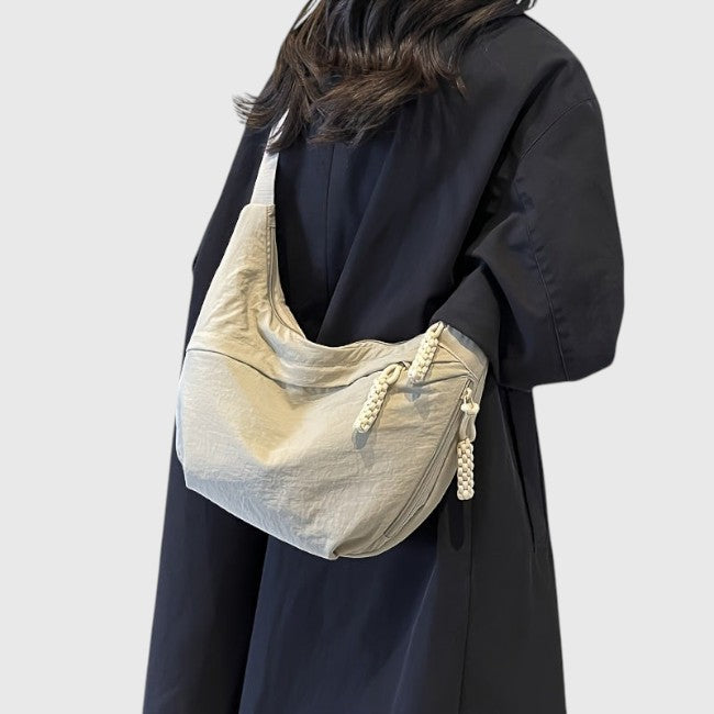 תיק קליל ואופנתי שנועד לשמור על כל מה שחשוב לך בהישג יד ובצורה מאורגנת. עם צורה רפויה ופרטים פרקטיים, הוא מושלם לשימוש יומיומי.