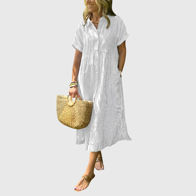 הוסיפו נגיעה של אלגנטיות יומיומית עם שמלת מקסי קלילה ומאווררת. עיצוב זורם שמעניק שילוב מושלם בין נוחות לסטייל.