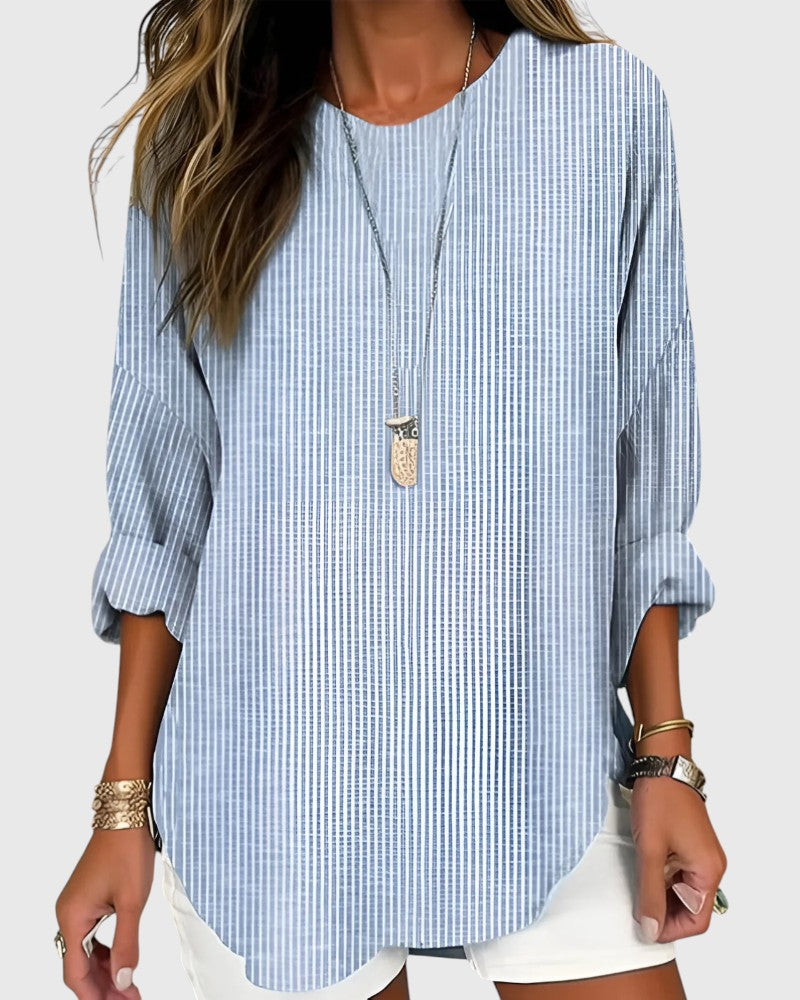 חולצה קלילה המשלבת נוחות עם אלגנטיות יומיומית. הגזרה המשוחררת ועיצוב הפסים מעניקים מראה ורסטילי המתאים לכל סגנון יומיומי.