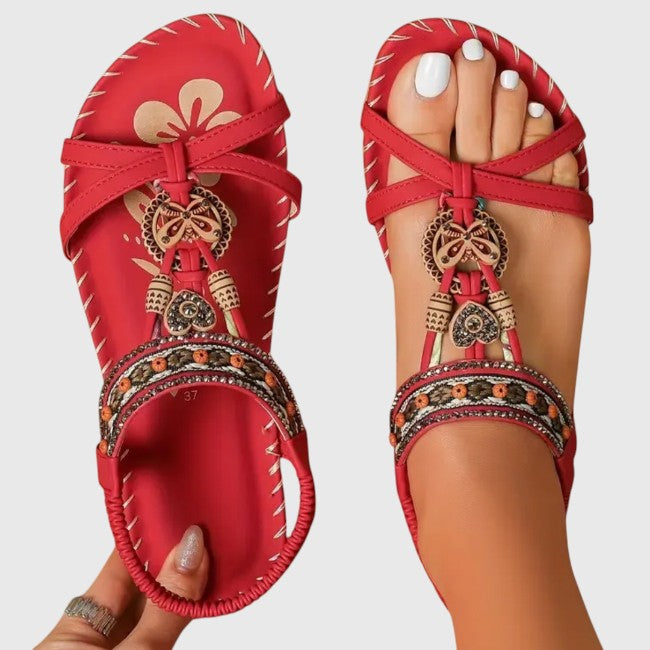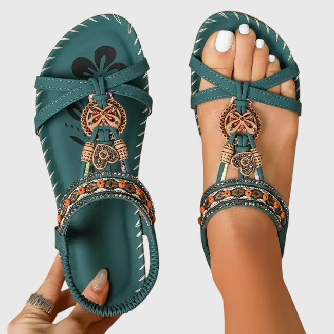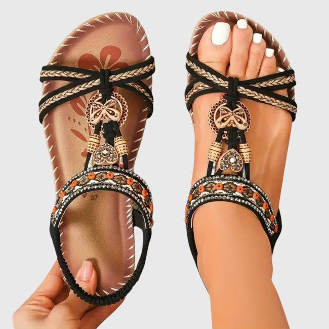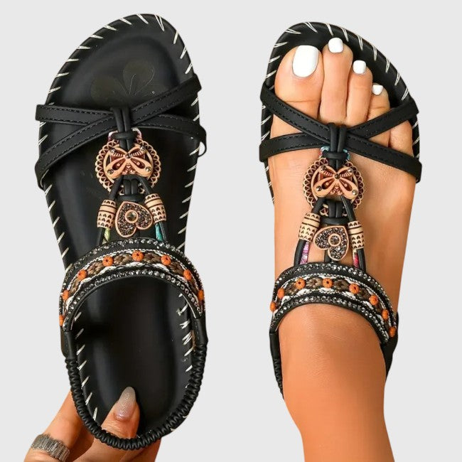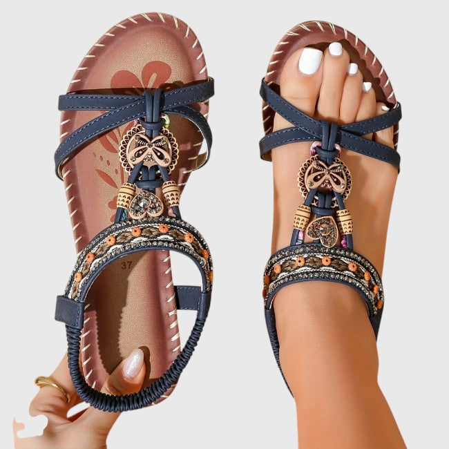 הוסיפי נגיעה של אלגנטיות לנוחות היומיומית שלך. סנדלים אלה משלבים עיצוב תומך עם פרטים דקורטיביים ייחודיים, כך שכפות הרגליים שלך נשארות נוחות וסטייליסטיות לאורך כל היום.