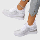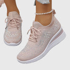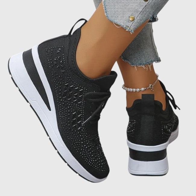 סניקרס אורטופדיות המשלבות נוחות תומכת עם סטייל עכשווי. עם סוליה מרופדת ועיטורי אבנים נוצצות, הן מספקות גם בריאות וגם יופי.