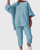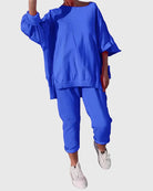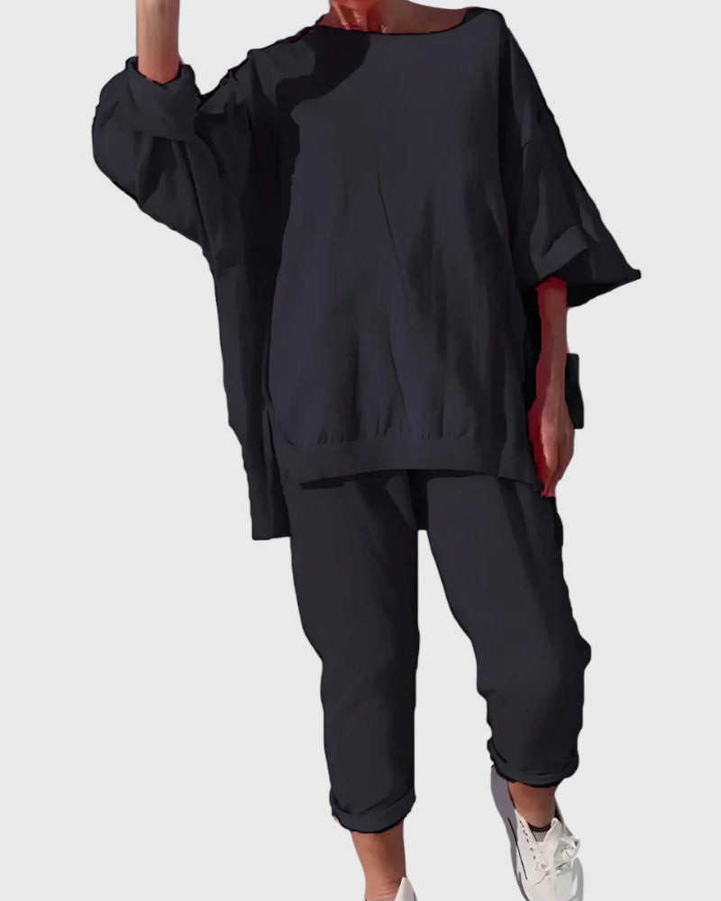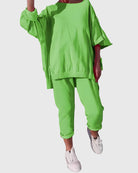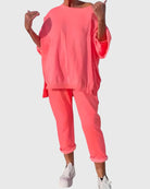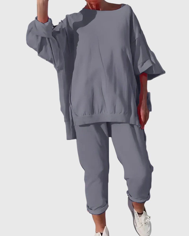 הסט של לינה מביא איתו שילוב מושלם של נוחות וסטייל יומיומי. גזרה רפויה ומודרנית עם חולצה משוחררת ומכנס בגזרה קלאסית, מושלם ליום נינוח בבית או ליציאה קלילה.