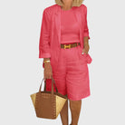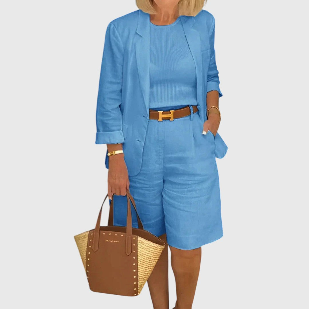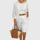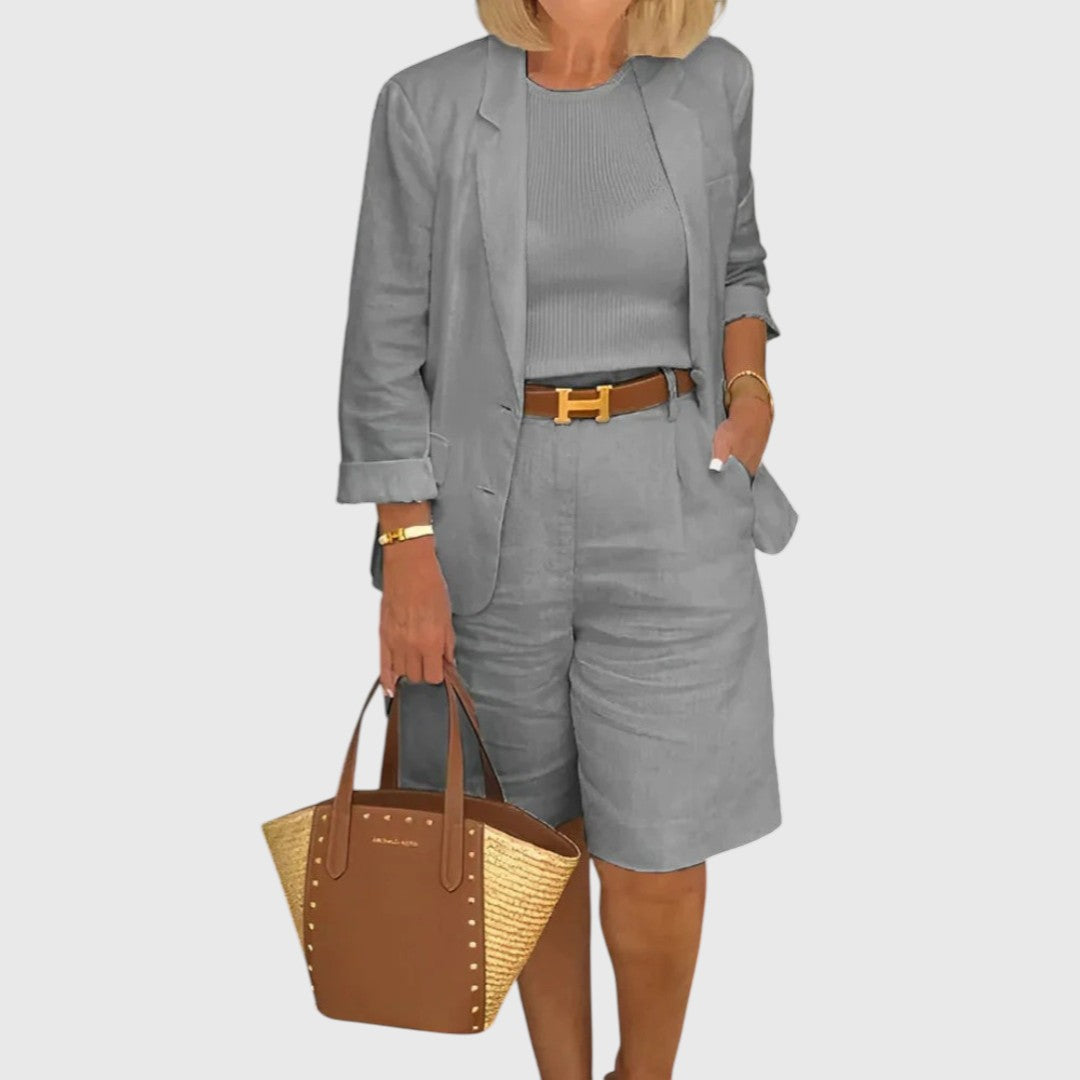 - סילואט מודרני מחמיא: הז'קט המובנה בעדינות והשורטס הנושמים יוצרים מראה מעודן, אך נינוח, שמחמיא לכל צורה.