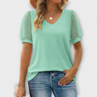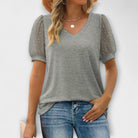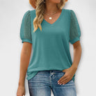 רמה – טופ עם שרוולים שקופים וחתך V – אלגנטיות עדינה, סגנון יומיומי.