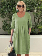 שמלת פשתן נינוחה עם כיסים של מרלי - חווו סגנון ונוחות ללא מאמץ עם שמלת הפשתן המושלמת שלנו, אידיאלית למזג אוויר חם וליציאות נינוחות.