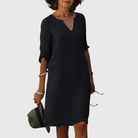 שמלה אלגנטית שמשדרת פשטות מתוחכמת ויופי נצחי. מעניקה נוכחות מלאה חן וביטחון, מושלמת לכל הזדמנות שבה האלגנטיות מדברת בעד עצמה.