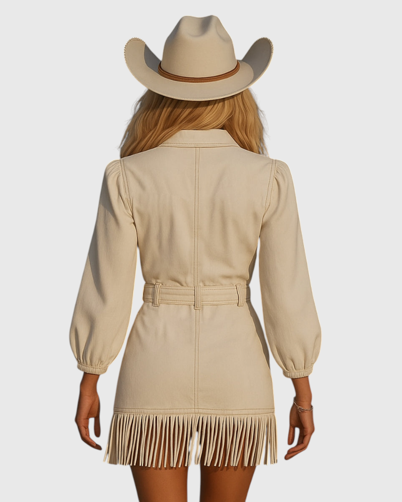 אוברול נועז ושיקי המשלב אלמנטים מערביים בעיצוב עדכני. עם חגורה במותן, תפרים מוקפדים ופרנזים שובבים, זהו פריט לנשים שאוהבות לבלוט בביטחון.
