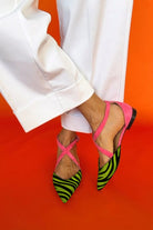 זארלה | סנדלים שטוחים עם דוגמת זברה ורצועות מצטלבות סביב הקרסול