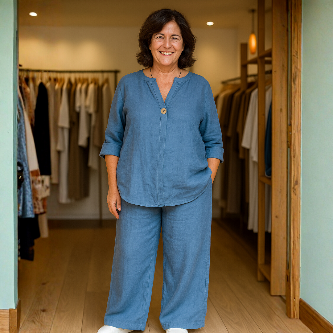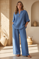 ✔ סילואט רגוע: טופ רפוי ומכנסיים רחבים מספקים נוחות מקסימלית.