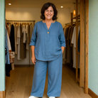 התענגו על אלגנטיות נוחה עם המירלדה - סט לואנג' רגוע בשני חלקים, שילוב מושלם של סגנון ונוחות. בין אם אתם מתפנקים בבית או יוצאים לסידורים מזדמנים, הסט הזה מבטיח שתשארו אופנתיים ונוחים.