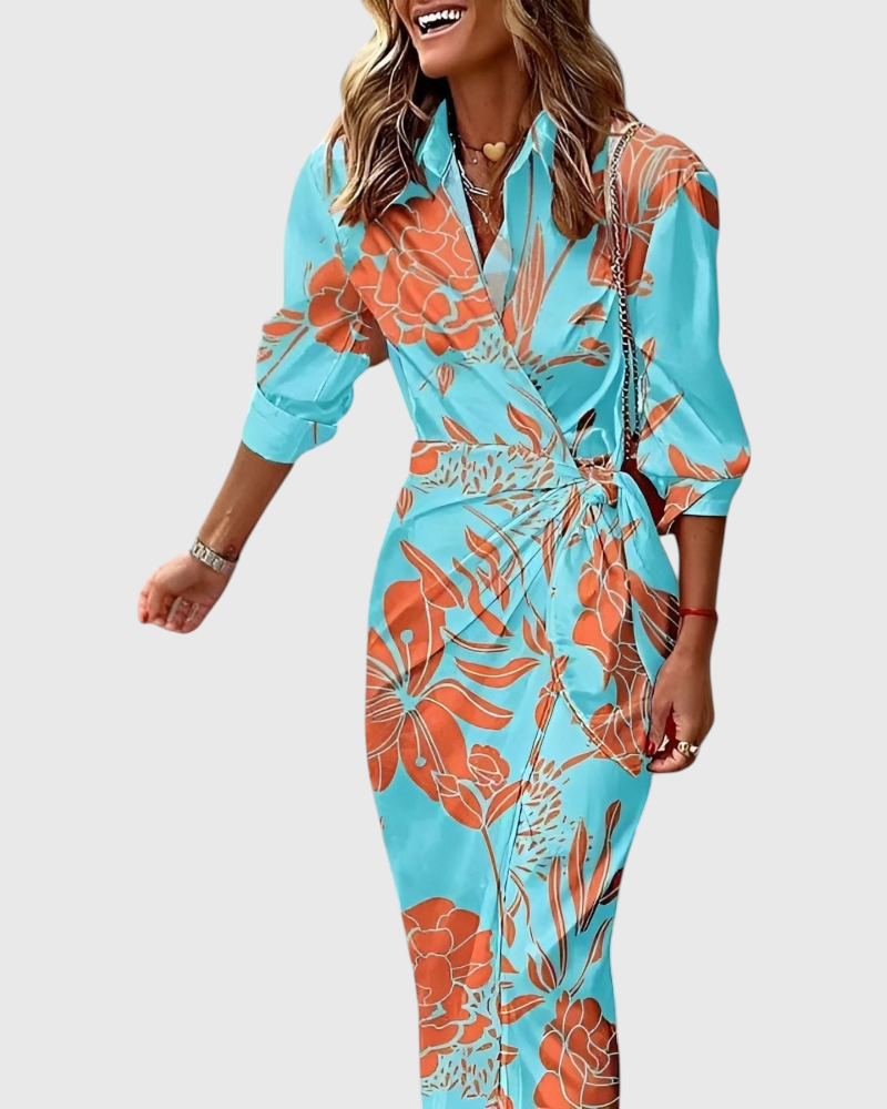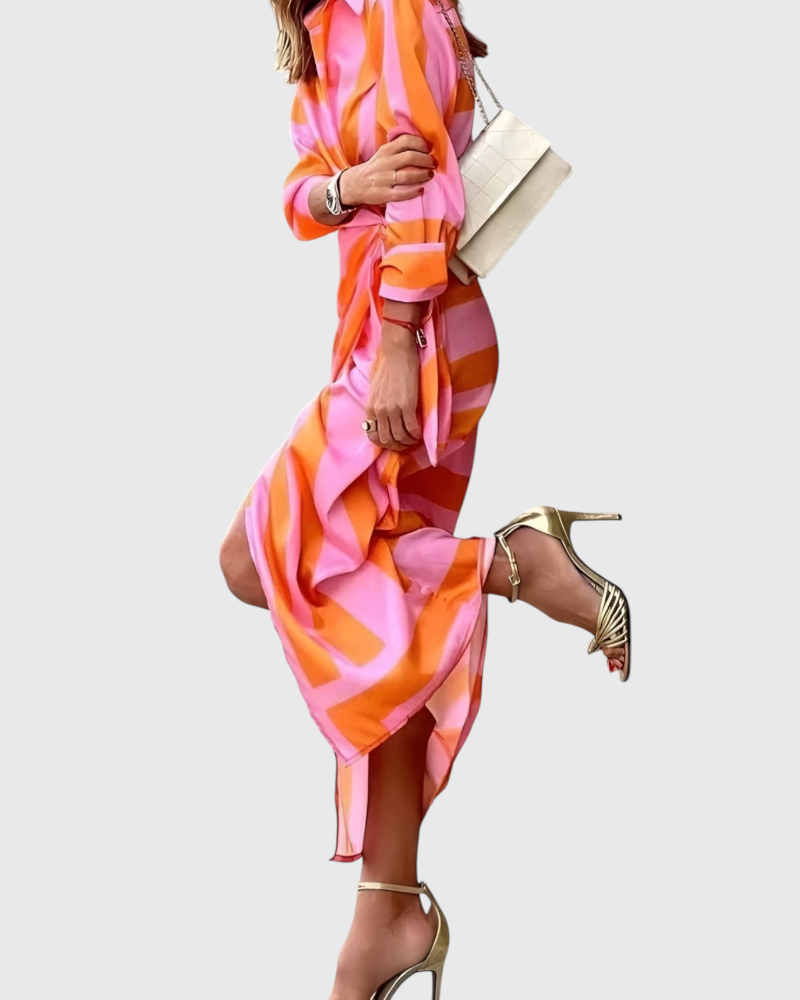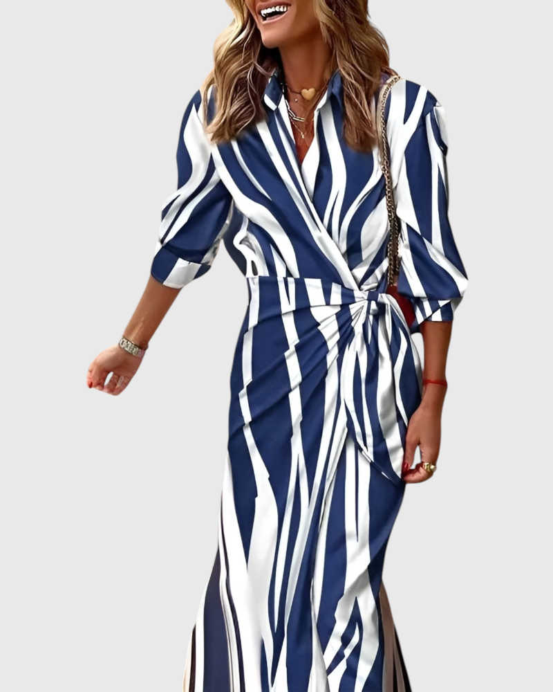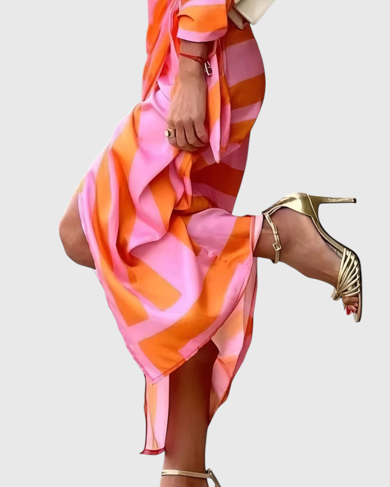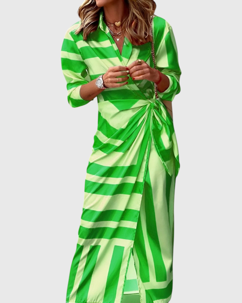 שמלת מעטפת נועזת ומתוחכמת המשלבת נוחות עם סטייל מודרני. הדפס גיאומטרי מרשים וקשירה מחמיאה במותן הופכים אותה לפריט אופנתי מלא נוכחות.