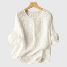 חולצה עם רקמה עדינה שמוסיפה נגיעה נשית ועל-זמנית לכל הופעה. מתאימה ליום במשרד, ליציאה קלילה או לערב עם חברות.