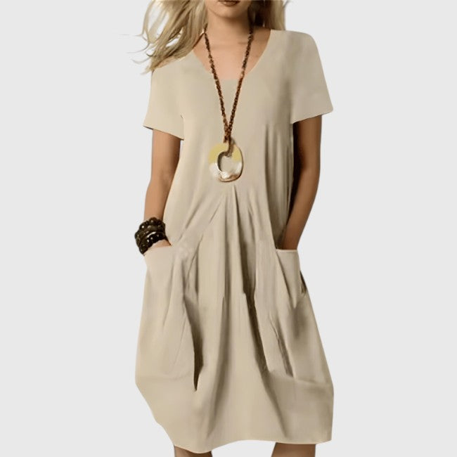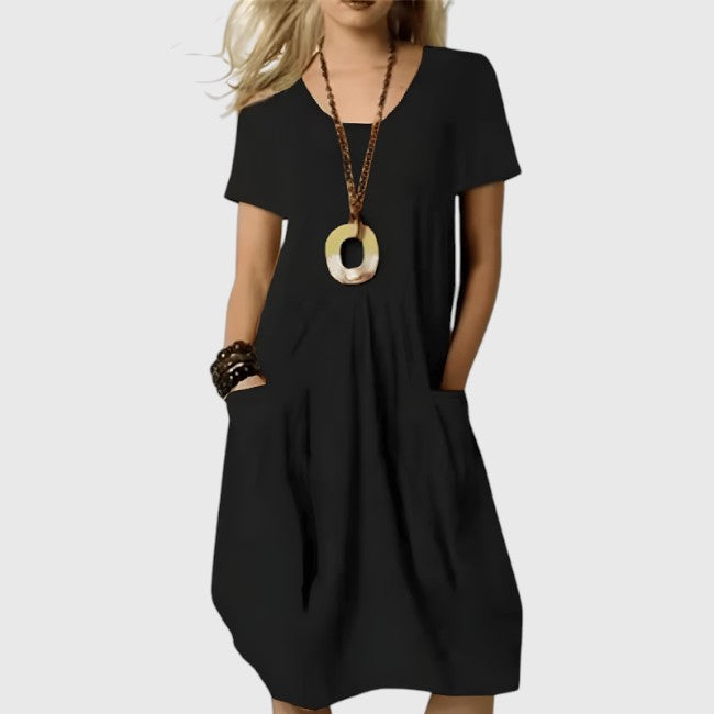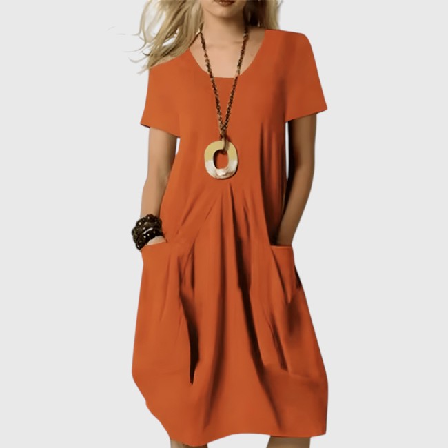 שמלה נוחה ורב-שימושית המיועדת ללבישה יומיומית ללא מאמץ. עם גזרה רפויה וכיסים פרקטיים, היא משלבת פונקציונליות עם אלגנטיות פשוטה.