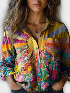 חולצת בלוז Glow Solsika עם הדפס פצ'וורק וצבעי שמש