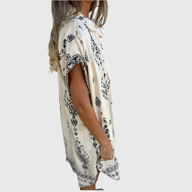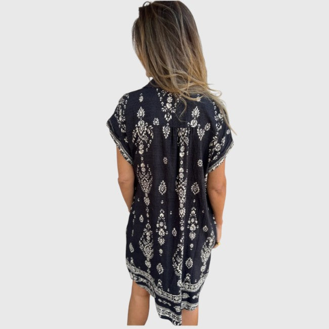 שמלת נופר משלבת נוחות עם מראה קלאסי ונשי. העיצוב המשוחרר והכפתורים בחזית מעניקים לה מראה רך ואלגנטי, מושלם לכל יום שבו את רוצה להרגיש יפה ונינוחה.
