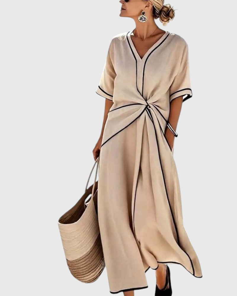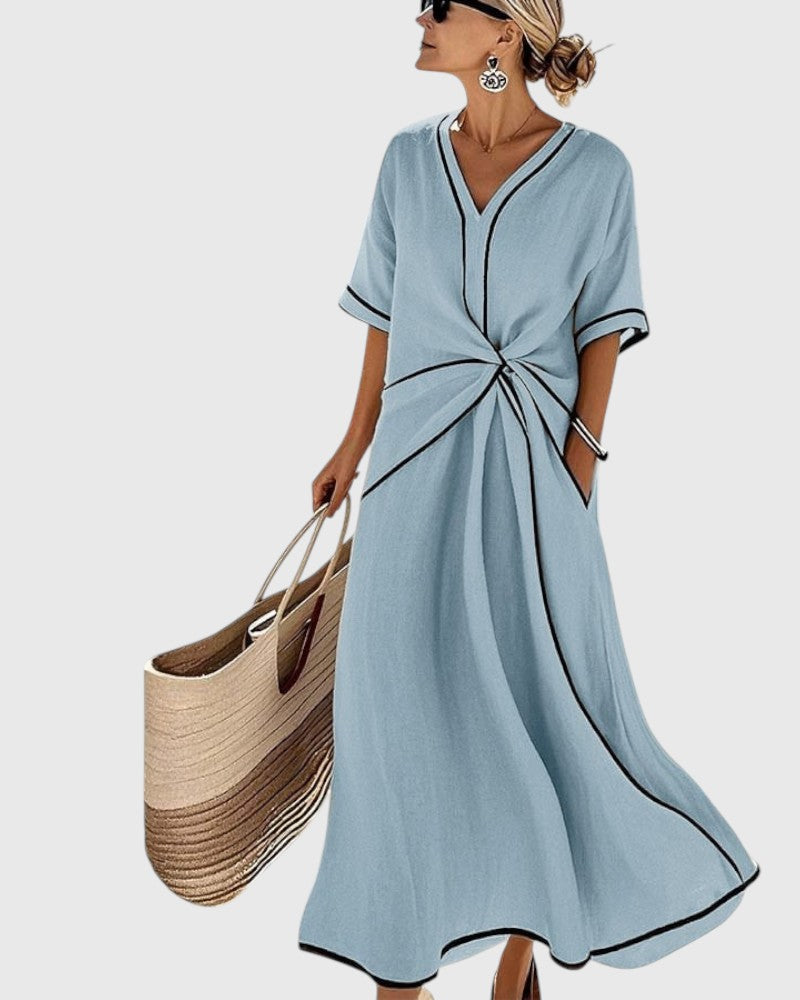 שמלת אינס משלבת נוחות אלגנטית עם מראה נשי ומתוחכם. הקשירה במותן והגזרה הרכה יוצרים מראה מחמיא וזורם לכל אירוע.
