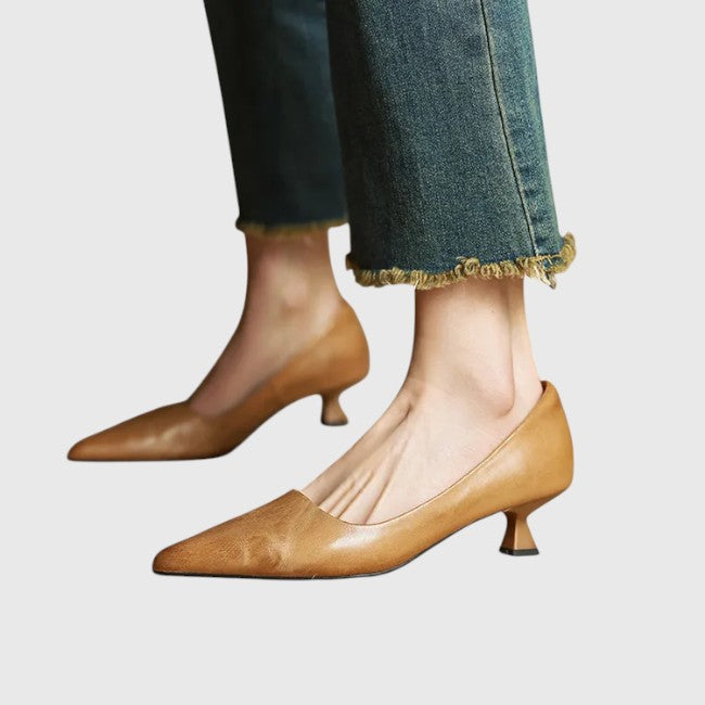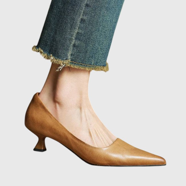 נעליים אלגנטיות וקלאסיות לנשים שמחפשות שילוב של יופי ונוחות. עם חרטום מחודד ועקב נמוך ותומך, הן מתאימות למשרד, לאירועים מיוחדים ולמראה אלגנטי יומיומי.